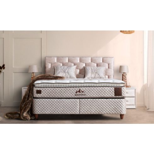 A Magnesia franciaágy igazán kifinomult tervezésének köszönhetően, minden szívet rabul ejt. Luxus ágynak felel meg, amelyet Ön is megérdemel a mindennapi fárasztó napok után. Hihetetlen kényelmet és nyugodtságot biztosít, hiszen a 31 cm-es matracban a 7 csomagolt rugózóna lehetővé teszi a testsúly eloszlását a matrac teljes felületén, mindemellett felveszi az Ön testformáinak teljes formáját, megtámasztja testét és segít a gerincet semleges helyzetbe hozni. A Magnesia matrac terjedelmes és kényelmes felületű, dupla rétegű Hyper szivaccsal összefonva, igazán fokozott kényemet nyújt az alvashoz. Extra erős és szilárd a nagy sűrűségű szivaccsal körbevett falak miatt.