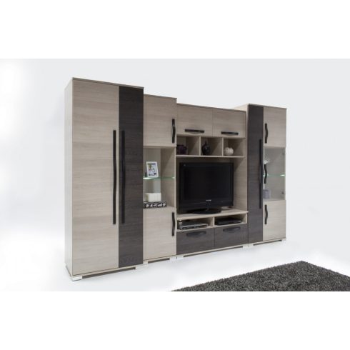 Az Atlanta szekrénysor elegáns és egyben modern szinkombinációban tökéletes választás nappalijába. Az elemek belső kialakításának köszönhetően tökéletesen rendszerezheti benne a minden nap használt tárgyakat. Led világítássával hangulatos megvilágítást is teremthet otthonában.