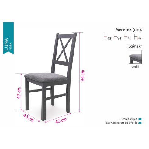 Legyen Öné a Prága asztal 6 db Luna székkel és varázsolja el vele otthonát! Az asztal laminált bútorlapból készül, bővíthető asztallappal, többféle csodás színben. A Luna szék szürke szövetével az esztétika mellett a kényelmet is támogatja. Pácolt, lakkozott bükkfa vázzal kapható.