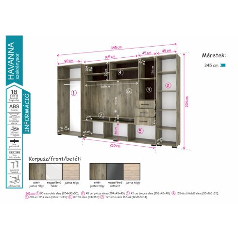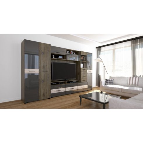 Karakteres, 345 cm-es méretben kapható Havanna szekrénysorunk 3-as színkombinációja különleges megjelenést kölcsönöz nappalijának.