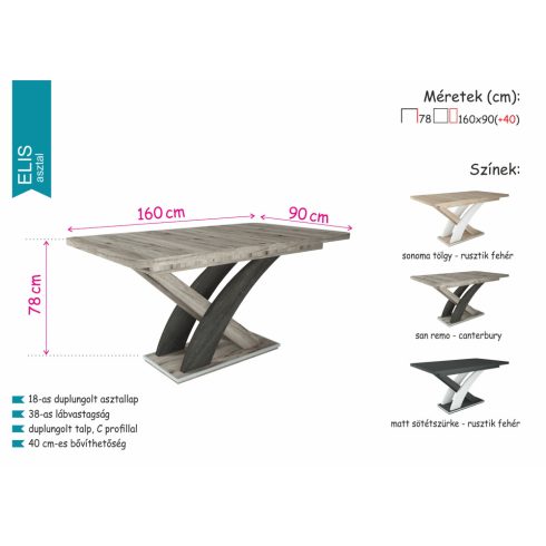 bővíthető asztallap. 3 szín közül választhat: sonoma tölgy, san remo és matt sötétszürke.