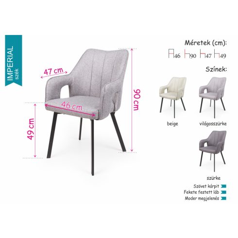 ülőlap magasság: 49 cm