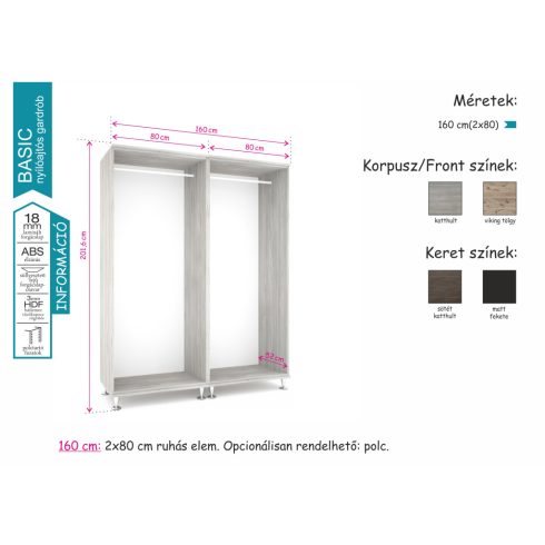 A Basic gardrób klasszikus stílusú bútor, amely tökéletes választás a letisztult berendezésű lakásokba. Belső polc és fiók kosár külön rendelhető hozzá.