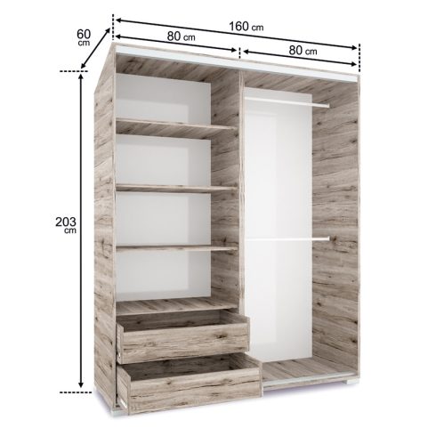 A Capri gardrób trendi stílusa tökéletes választás a modern lakásokba. Akasztós, polcos tárolókkal, valamint lent széles fiókkal készül, így a pakolás gyerekjáték benne.