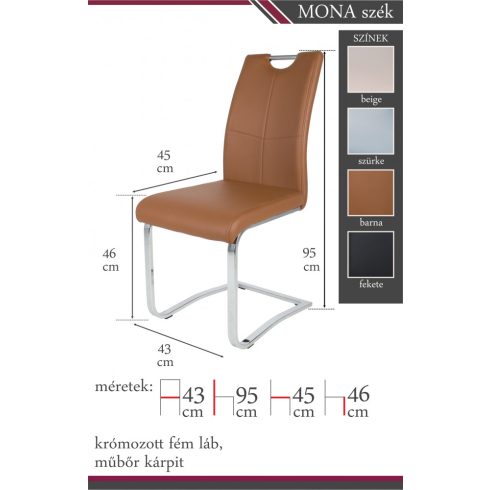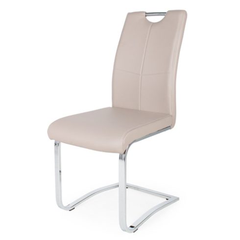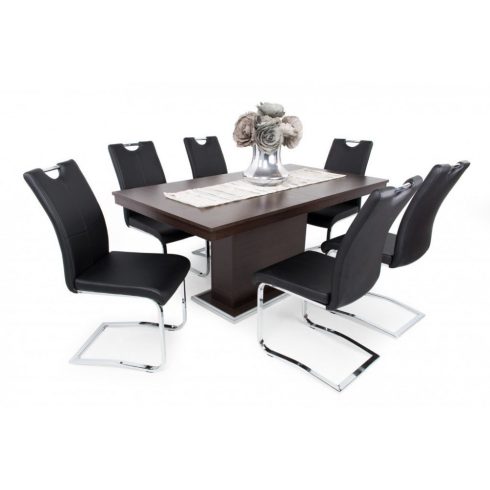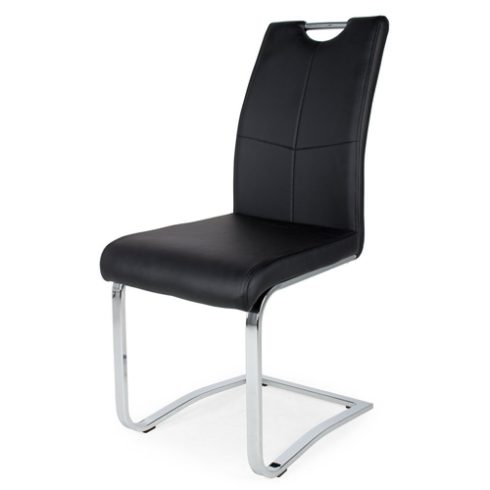 Modern és stílusos. A székek krómozott fém lábbal, textilbőr kárpittal készülnek.