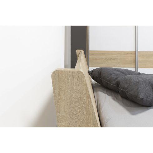 Leo ágykeret fiatalos modern formavilágú, amit a lábak, és fejtámla vonalvezetésének köszönhet. Tartós 18 mm-es bútorlapból készül, 38-as laminált lábai szintén erős, stabil tartást biztosít.