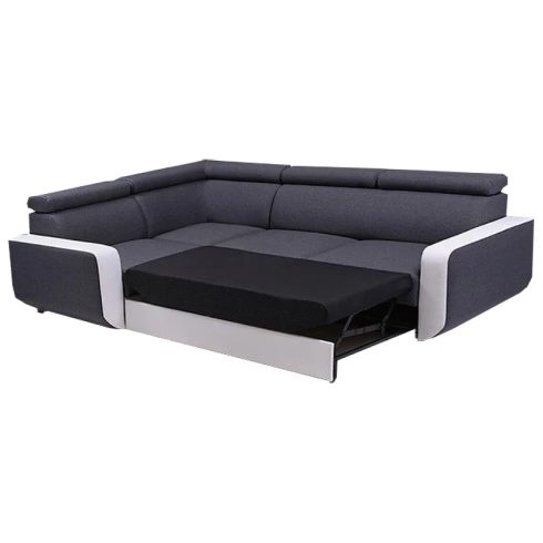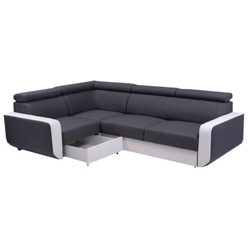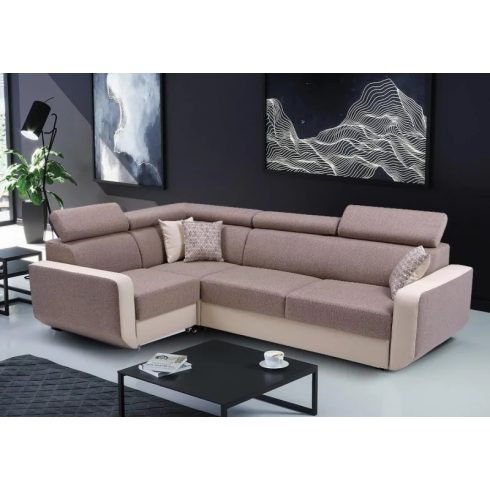 magas fekhelyes, univerzális, hátulja szövettel bevonva, hullámrugós, textilbőr - szövet kombinált, ágyazható, ágyneműtartós, állítható fejtámla, 250 cm szélességig