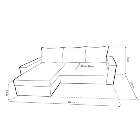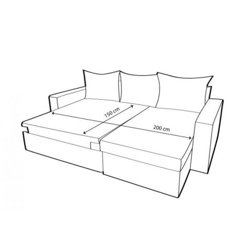 külső méret: 240 × 153 cm, fekvőfelület: 150 × 200 cm, ülőmagasság: 46 cm, beülőmélység (párnával): 64 cm, beülőmélység: 84 cm, háttámlamagasság: 75 cm